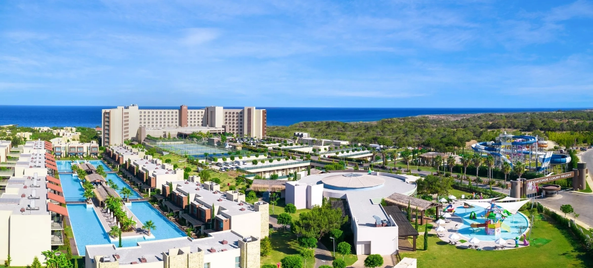 Surrounded by the unique beauty of the Mediterranean, Concorde Luxury Resort is an exclusive property carefully designed for guests seeking a comfortable and privileged holiday experience in Cyprus. With its modern architectural style and spacious areas, the hotel combines a peaceful atmosphere with entertainment and luxury details to offer an unforgettable stay.